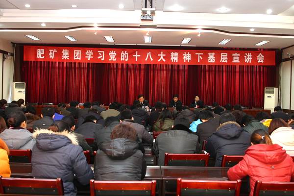 12月18日,肥矿集团党的十八大精神宣讲团在我公司党政四楼会议室进行了党的十八大精神宣讲,党委书记梁振溪参加了宣讲报告会。