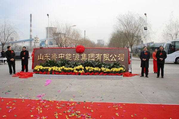在礼炮和鼓乐声中,山东煤炭工业局局长卜昌森、山东煤矿安全监察局副局长韩芳岐,肥城市市长单传海、肥城矿业集团公司董事长、党委书记孔青等领导同志为“山东鲁中能源集团有限公司”进行了揭牌。