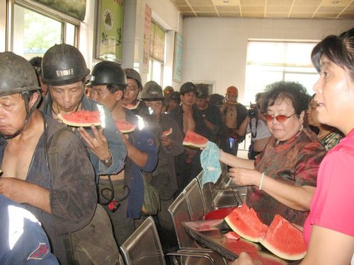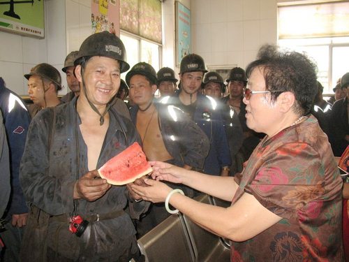 | 针对近期天气持续高温多雨,员工安全思想意识相对薄弱的实际,公司工会组织女工家属协管员深入区队、井口和工作面开展了“献爱心、促安全、夏日送清凉”系列活动。8月5日,全国煤炭好矿嫂、欣汝协管分会主任展延兰,又购买了700余斤西瓜带领协管员们一起顶着高温烈日来到井口,慰问上下井的一线员工。她一边将刚刚切开的一块块清凉解暑的西瓜送到员工手中,一边关切地叮嘱他们:“天气炎热,一定要注意防暑降温,不熬夜、不疲劳上岗、严格遵守规章制度,全家老小都盼着你们平安……。” 真诚朴实的关爱和祝愿,滋润着每一位矿工的心田。新鲜败火的绿豆汤、清凉甘甜的西瓜,为奋战在一线的员工送去了丝丝沁人心脾的清凉,让员工深刻感受到了大家庭的温馨与关爱。