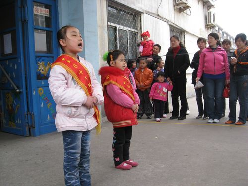 “请爷爷奶奶叔叔阿姨接孩子时请出示您的接送卡,以防您的宝宝走失了,请您一定要听从门卫及老师的安排,不要到护线里面来接宝宝……”幼儿园“文明小使者”稚嫩的声音受到家长们的欢迎。 针对社会上校园突发事件频发,幼儿园举一反三吸取事故教训,在职工家属和幼儿中广泛开展了“小手拉大手,结对保平安”活动,该园加强了门卫巡回管理,规范幼儿入园离园门口和楼梯的安全秩序,严格禁止外来人员入内。同时,为促进活动的开展,幼儿园专门成立了“文明小使者”活动小组,向广大职工家属宣传了文明、安全接送幼儿的必要性和重要性及园内的有关规定,让每一位家长文明接送,安全回家,确保幼儿入园离园安全。 图1为“文明小使者”向广大家长宣传文明理念。 图2为幼儿井然有序的离园回家。