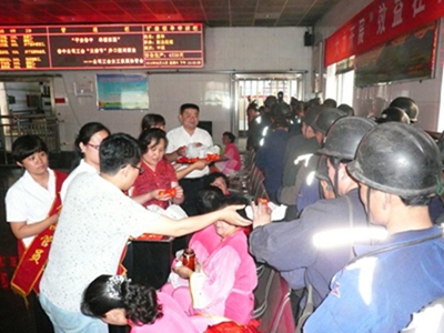 | “如果说我是一棵树,您就是那哺育我成长的雨露;如果我是一艘船,那么您就是那引我启航的指南针。爸爸,您是千百万煤矿工人中的一员,工作在井下第一线,我为自己是一名矿工儿女而深感自豪,您用您的汗水支撑起了家中这片天,而正是无数个您,撑起了企业发展的明天!爸爸,您可知道,您一个人在井下作业,纠动着的是我们一家子的心……”这是6月14日,鲁中公司工会在副井口举办的“平安鲁中 幸福家园”父亲节井口慰问演出活动中,三年级学生焦新雷给爸爸说的知心话。 父亲节之际,女工家属协管会精心编排了一台安全文艺节目,到井口慰问一线员工。幼儿园小朋友的三句半《矿工叔叔听我说》,道出了矿工儿女们期盼爸爸平安的美好祝福,小合唱《安全生产大如天》、舞蹈《张灯结彩》表达了协管员们祈盼安全生产的美好心愿。她们还把绣有“一生平安”字样的红腰带和香喷喷的肉火烧送到了矿工手中,并叮嘱着亲人们一定要时刻绷紧安全弦,筑牢家庭幸福与快乐的基石。采一区的赵师傅兴致勃勃地说:“孩子们的祝愿,让我感触很深,这是父亲节里我收到的最好的礼物!今后我一定严格按章作业,决不辜负亲人们的期盼!”欢歌笑语和《祝你平安》的歌声久久回荡在井口……。 此次慰问活动共为职工送上红腰带400余条、肉火烧800余个。