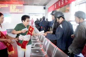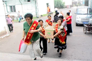 | 9月8日中午,全国煤炭好矿嫂展延兰和协管员们一起来到副井口,慰问节日坚持生产的一线员工。 中秋十五月儿圆,送来月饼保平安。好矿嫂展延兰一边把象征“团圆”、“平安”的月饼递到矿工手中,一边不断地叮嘱着,节日期间勿忘安全生产,勿忘亲人的嘱托。“一块月饼一颗心,一句祝福一片情”,浓浓的情意,是广大女工家属协管员对亲人们的美好祝愿。矿工们吃着香甜的月饼,聆听着展妈妈贴心的话语,感动地一再表示:一定时刻牢记安全生产,上标准岗、干放心活,以优异的安全佳绩回报亲人的期盼与厚爱,确保矿山的平安和谐。